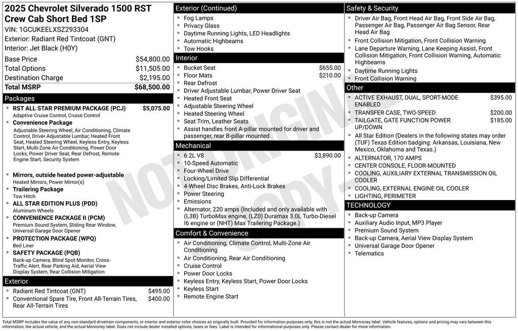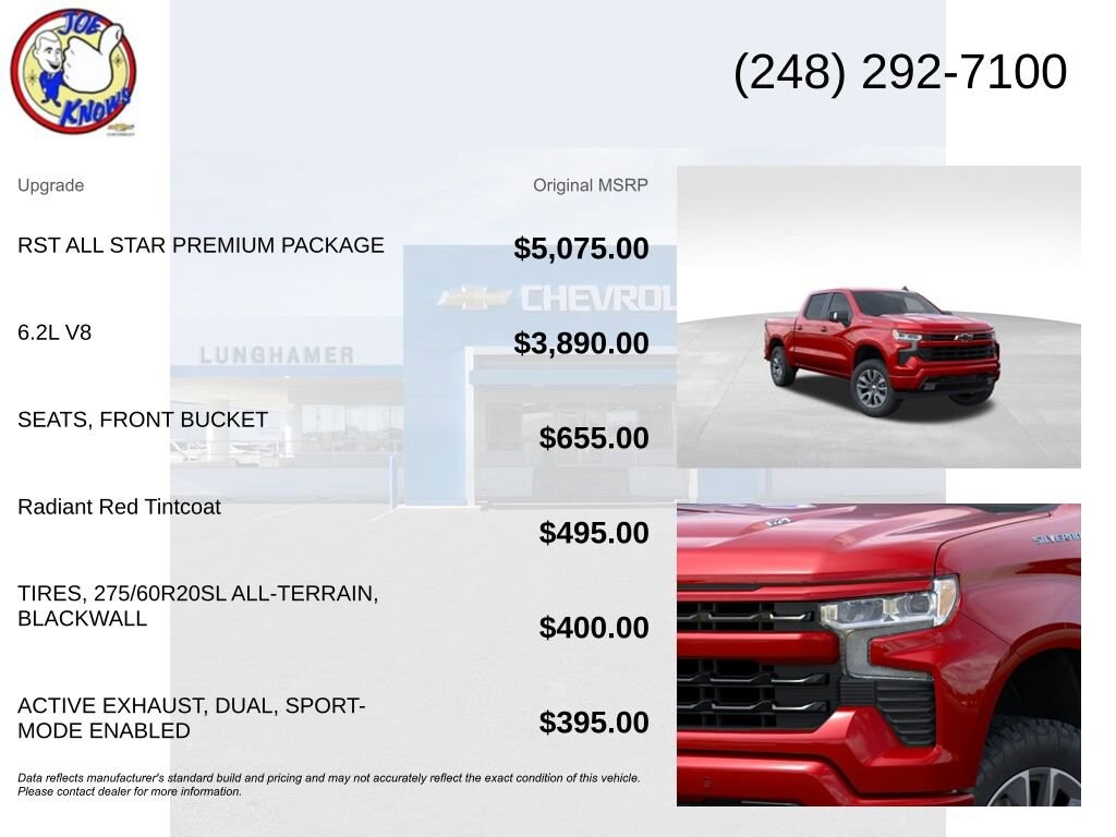 Whether you're tackling tough jobs or embarking on weekend adventures, the 2025 Chevrolet Silverado 1500 RST is the perfect companion. With its exceptional performance, advanced technology, and premium amenities, this truck is designed to make every drive more enjoyable and productive. Visit our showroom today and experience the power and versatility of the Silverado 1500 RST for yourself. . Must qualify for GM Employee discount, others will be slightly higher. Tax, title, license and dealer fees (unless itemized above) are extra. Not available with special finance or lease offers. Price includes: $1250 - Chevrolet Consumer Cash Program. Exp. 04/30/2026 $1250 - GM Costco Executive Member Private Offer . Exp. 04/30/2026 $750 - Chevrolet Bonus Cash. Exp. 04/30/2026