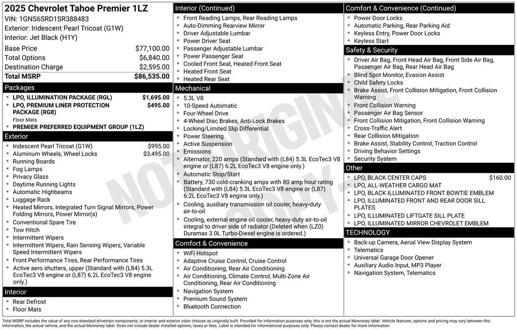 Discover the true essence of the Tahoe Premier and schedule a test drive today. This exceptional SUV is waiting to transform your driving experience and take you on unforgettable adventures. Don't miss your opportunity to own this remarkable vehicle. . Must qualify for GM Employee discount, others will be slightly higher. Tax, title, license and dealer fees (unless itemized above) are extra. Not available with special finance or lease offers. Price includes: $1000 - Chevrolet Consumer Cash Program. Exp. 03/02/2026