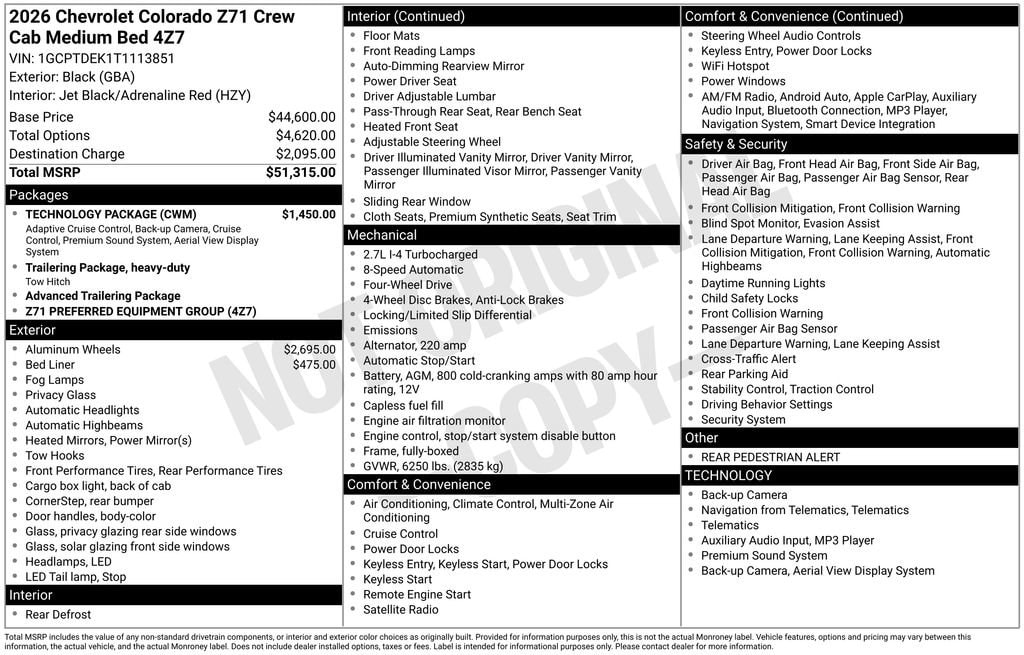 Elevate your driving experience with the 2026 Chevrolet Colorado Z71. This rugged and versatile truck is the perfect companion for your next adventure, offering unparalleled capability, cutting-edge technology, and exceptional comfort. Visit our showroom today to explore this remarkable vehicle and discover how it can enhance your driving lifestyle. . Must qualify for GM Employee discount, others will be slightly higher. Tax, title, license and dealer fees (unless itemized above) are extra. Not available with special finance or lease offers. Price includes: $1000 - Chevrolet Consumer Cash Program. Exp. 03/31/2026