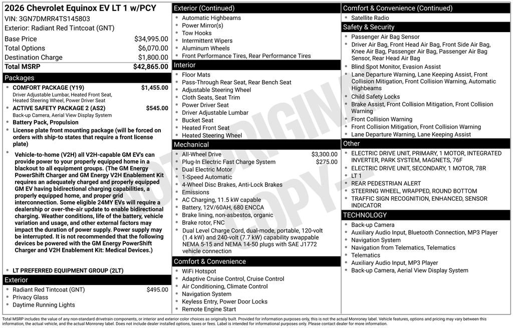 Elevate your driving experience with the 2026 Chevrolet Equinox EV LT. This exceptional crossover offers the perfect combination of cutting-edge technology, exceptional efficiency, and head-turning style, all at an incredible value of $38,442.