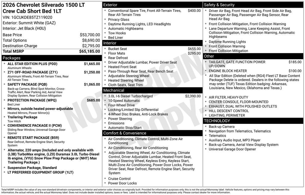 With its impressive capabilities, thoughtful features, and bold styling, the 2026 Chevrolet Silverado 1500 LT LT1 is the perfect companion for your next adventure. Experience the future of truck ownership and schedule a test drive today. We're confident this Silverado will exceed your expectations and become an indispensable part of your life. . Must qualify for GM Employee discount, others will be slightly higher. Tax, title, license and dealer fees (unless itemized above) are extra. Not available with special finance or lease offers. Price includes: $1750 - Chevrolet Bonus Cash. Exp. 03/02/2026 $2500 - Chevrolet Consumer Cash Program. Exp. 03/02/2026