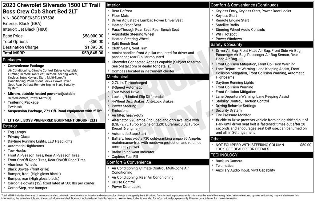Experience the ultimate in capability and style with the 2023 Chevrolet Silverado 1500 LT Trail Boss. This rugged and refined pickup is built to conquer any terrain, while delivering the comfort and technology you demand.