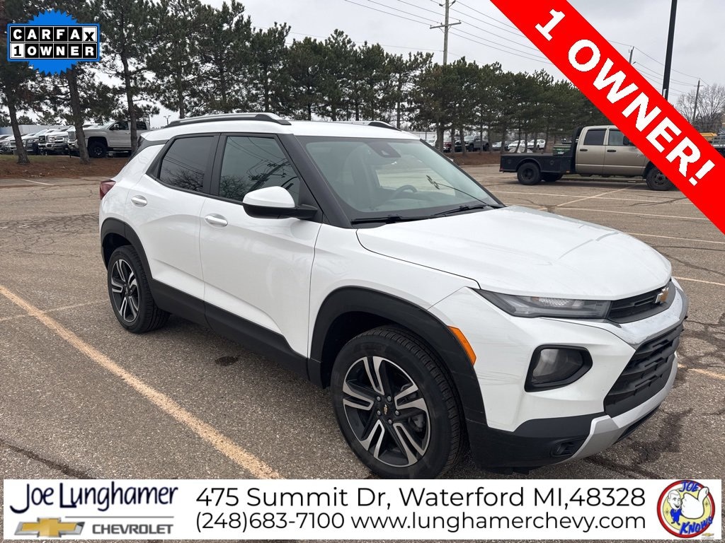 Clean CARFAX. CARFAX One-Owner.Certified. Priced below KBB Fair Purchase Price! Recent Arrival! 26/30 City/Highway MPGSummit White 2023 Chevrolet TrailBlazer LT AWD 9-Speed Automatic 1.3L Ecotec Turbo DOHC SIDI w/VVTTrailBlazer LT, 4D Sport Utility, 1.3L Ecotec Turbo DOHC SIDI w/VVT, 9-Speed Automatic, AWD, Summit White, Black Cloth.Joe Lunghamer Chevrolet has been family-owned and proudly serving Oakland County and surrounding communities since 1954. Our mission is simple: deliver exceptional customer service and a total ownership experience that feels effortless. Whether youâre shopping for a new or pre-owned vehicle, our team is committed to finding the right fit for your lifestyle and the right financing for your budget. And when it comes to maintaining your vehicle, Joe Knows service never fits neatly into a busy schedule. Thatâs why we offer convenient service hours Monday-Friday, 8am5pm. Our service department features highly trained advisors, factory-certified technicians, and state-of-the-art equipment ensuring your vehicle is repaired right the first time at a fair price. Thatâs how weâve earned customer loyalty for more than 70 years. We invite you to visit our dealership, explore our large selection of new and used vehicles, and meet our knowledgeable sales and service teams. At Joe Lunghamer Chevrolet, weâre here to serve you.Joe knows used cars and has been family-owned and proudly serving Oakland County and surrounding communities since 1954. Our mission is simple: deliver exceptional customer service and a total ownership experience that feels effortless. Whether youâre shopping for a new or pre-owned vehicle, our team is committed to finding the right fit for your lifestyle and the right financing for your budget. And when it comes to maintaining your vehicle, Joe Knows service never fits neatly into a busy schedule. Thatâs why we offer convenient service hours Monday-Friday, 8am5pm. Our service department features highly trained advisors, factory-certified technicians, and state-of-the-art equipment ensuring your vehicle is repaired right the first time at a fair price. Thatâs how weâve earned customer loyalty for more than 70 years. We invite you to visit our dealership, explore our large selection of new and used vehicles, and meet our knowledgeable sales and service teams. At Joe Lunghamer Chevrolet, weâre here to serve you.