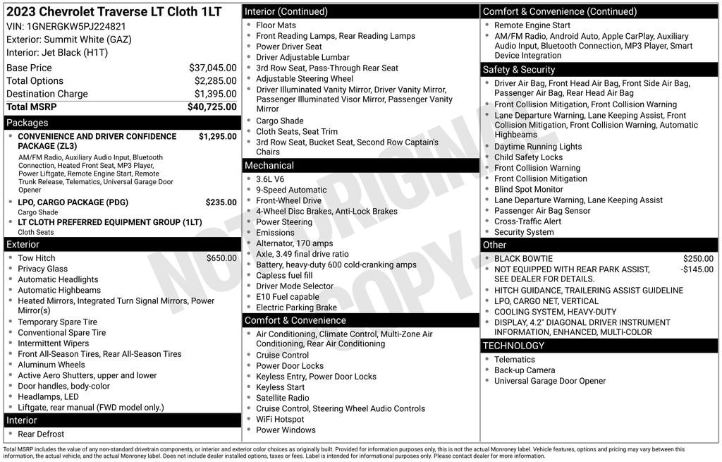Experience the ultimate family-friendly SUV with the 2023 Chevrolet Traverse LT 1LT. This versatile and capable vehicle is the perfect companion for your adventures, offering a winning combination of style, comfort, and advanced technology.