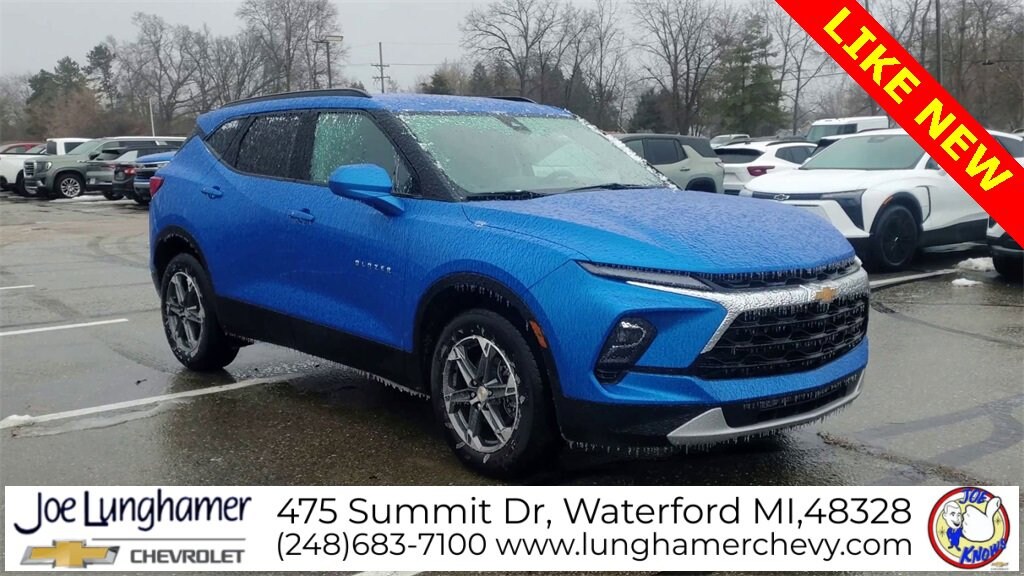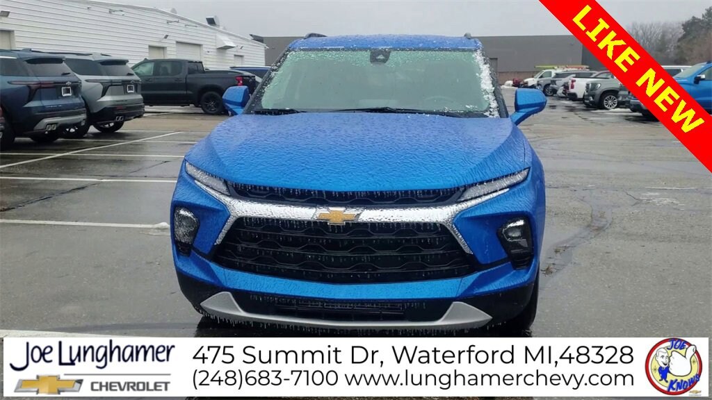 Clean CARFAX.Priced below KBB Fair Purchase Price! Odometer is 9696 miles below market average! 22/29 City/Highway MPGRiptide Blue Metallic 2025 Chevrolet Blazer LT FWD 9-Speed Automatic with Overdrive 2.0L TurbochargedREMAINDER OF FACTORY WARRANTY, FACTORY CERTIFIED, INCLUDES WARRANTY, GOOD TIRES, GOOD BRAKES, REAR BACK UP CAMERA, LANE MONITOR ALERT, APPLE CAR PLAY ANDROID AUTO, RECENT TRADE IN, Blazer LT, 4D Sport Utility, 2.0L Turbocharged, 9-Speed Automatic with Overdrive, FWD, Riptide Blue Metallic, Jet Black/Medium Gray w/Premium Cloth Seat Trim, 170 Amp Alternator, 1st and 2nd Row All-Weather Floor Liners, 3.47 Final Drive Axle Ratio, 4-Way Manual Front Passenger Seat Adjuster, 4-Wheel Disc Brakes, 6 Speakers, 6-Speaker Audio System Feature, 8-Way Power Driver Seat Adjuster, ABS brakes, Adaptive Cruise Control, Air Conditioning, Alloy wheels, AM/FM radio: SiriusXM with 360L, Auto High-beam Headlights, Automatic temperature control, Black Roof-Mounted Side Rails, Brake assist, Child-Seat-Sensing Airbag, Convenience Package, Delay-off headlights, Driver Confidence Package, Dual front impact airbags, Dual front side impact airbags, Electronic Stability Control, Emergency communication system: OnStar and Chevrolet connected services capable, Enhanced Automatic Emergency Braking, Floor Liner Package, Four wheel independent suspension, Front anti-roll bar, Front Bucket Seats, Front Center Armrest, Front dual zone A/C, Fully automatic headlights, Heated Driver and Front Passenger Seats, Heated front seats, Inside Rear-View Auto-Dimming Mirror, Integrated Cargo Liner, Knee airbag, Lane Change Alert with Side Blind Zone Alert, Low tire pressure warning, Occupant sensing airbag, Overhead airbag, Panic alarm, Passenger door bin, Power Driver Lumbar Control, Power driver seat, Power steering, Power windows, Preferred Equipment Group 2LT, Premium audio system: Chevrolet Infotainment 3 Plus, Premium Cloth Seat Trim, Radio data system, Radio: Chevrolet Infotainment 3 Plus System, Rear anti-roll bar, Rear Cross Traffic Alert, Rear Park Assist with Audible Warning, Rear Power Programmable Liftgate, Rear reading lights, Rear seat center armrest, Rear window defroster, Rear window wiper, Remote keyless entry, Security system, SiriusXM with 360L, Speed control, Speed-sensing steering, Split folding rear seat, Steering wheel mounted audio controls, Stop-Start Engine Control System, Tachometer, Telescoping steering wheel, Tilt steering wheel, Traction control, Trip computer, Universal Home Remote, Variably intermittent wipers, Voltmeter, Wheels: : 18 Grazen Metallic Aluminum, Wireless Charging, Apple CarPlay/Android Auto, Bumpers: body-color, Compass, Driver door bin, Driver vanity mirror, Front reading lights, Heated door mirrors, Illuminated entry, Leather Shift Knob, Outside temperature display, Overhead console, Passenger vanity mirror, Power door mirrors, Ride and Handling Suspension, Spoiler, Blazer LT, 4D Sport Utility, 2.0L Turbocharged, 9-Speed Automatic with Overdrive, FWD, Riptide Blue Metallic, Jet Black/Medium Gray w/Premium Cloth Seat Trim, 170 Amp Alternator, 1st and 2nd Row All-Weather Floor Liners, 3.47 Final Drive Axle Ratio, 4-Way Manual Front Passenger Seat Adjuster, 4-Wheel Disc Brakes, 6 Speakers, 6-Speaker Audio System Feature, 8-Way Power Driver Seat Adjuster, ABS brakes, Adaptive Cruise Control, Air Conditioning, Alloy wheels, AM/FM radio: SiriusXM with 360L, Auto High-beam Headlights, Automatic temperature control, Black Roof-Mounted Side Rails, Brake assist, Child-Seat-Sensing Airbag, Convenience Package, Delay-off headlights, Driver Confidence Package, Dual front impact airbags, Dual front side impact airbags, Electronic Stability Control, Emergency communication system: OnStar and Chevrolet connected services capable, Enhanced Automatic Emergency Braking, Floor Liner Package, Four wheel independent suspension, Front anti-roll bar, Front Bucket Seats, Front Center Armrest, Front dual zone A/C, Fully a