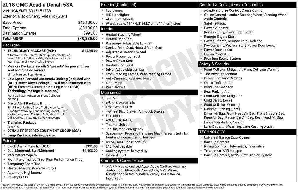 Black Cherry Metallic 2018 GMC Acadia Denali FWD 6-Speed Automatic 3.6L V6 SIDI DOHC VVT