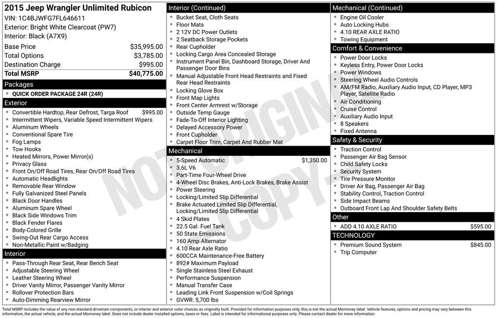 Whether you're seeking a thrilling off-road adventure or a capable daily driver, this 2015 Jeep Wrangler Unlimited Rubicon is the perfect choice. Experience the unparalleled freedom and excitement of Jeep ownership today. Visit our showroom and let us demonstrate how this exceptional Wrangler can transform your driving experience.