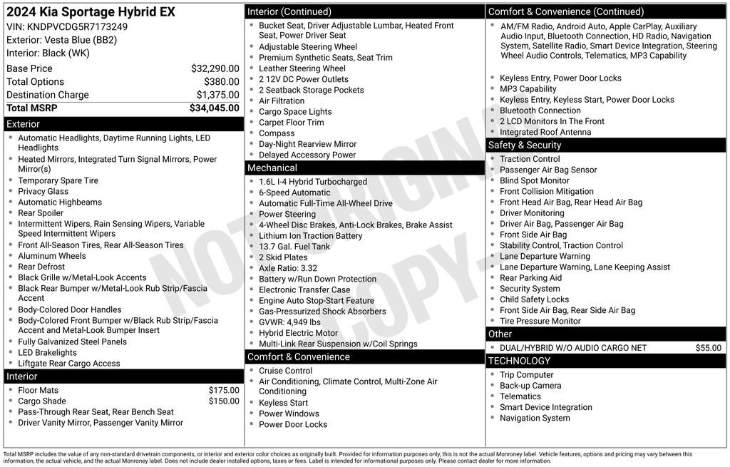 With its sleek design, exceptional efficiency, and impressive array of features, the 2024 Kia Sportage Hybrid EX is the perfect choice for those seeking a well-rounded, family-friendly SUV. Experience the perfect balance of style, performance, and practicality. Visit our showroom today and let us demonstrate why the Sportage Hybrid EX should be your next vehicle.