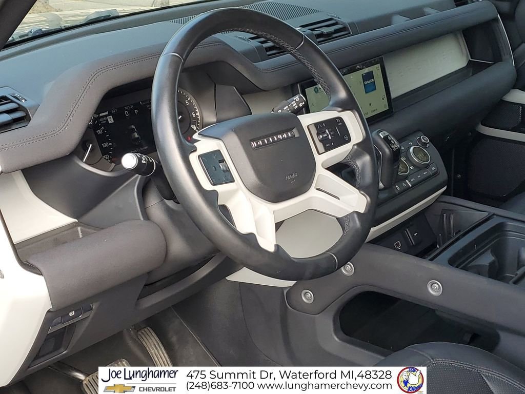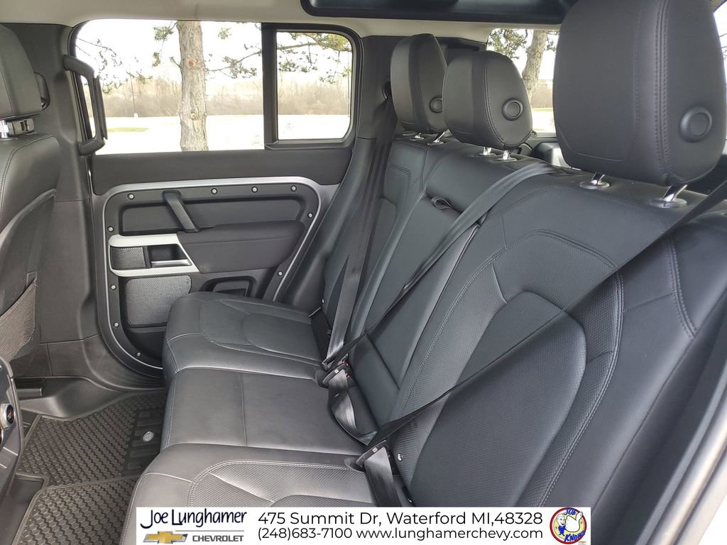 Discover the exceptional 2023 Land Rover Defender 110 SE, a true icon of off-road capability and refined luxury. This stunning Gray SUV boasts a powerful 3.0L I6 engine, paired with an 8-Speed Automatic transmission and 4WD, delivering an impressive balance of performance and efficiency with 18 city / 23 highway MPG.- 700W 15 Speaker Meridian Surround Sound System- Apple CarPlay & Android Auto- Connected Navigation PIVI Pro- 15 Speakers- Air Conditioning with Dual-Zone Automatic Control- Heated and Cooled 12-Way Power Memory Seats- Panoramic Sunroof- Rear Camera with Parking SensorsThe Defender 110 SE is more than just a capable off-roader; it's a true expression of adventurous spirit and refined sophistication. Its iconic design, combined with a host of advanced technologies and premium features, make this vehicle a standout in its class.Experience the unparalleled comfort and convenience of the Defender 110 SE, with amenities such as heated and cooled front seats, a premium Meridian sound system, and seamless smartphone integration. The spacious interior and versatile cargo area provide ample room for all your gear, whether you're conquering the trails or enjoying a night on the town.Beneath the surface, the Defender 110 SE is engineered to tackle any terrain with confidence. Its robust 4WD system, advanced suspension, and powerful engine work in harmony to deliver exceptional off-road capabilities, making it the perfect companion for your next adventure.We understand that finding the right vehicle is a significant decision. That's why we invite you to experience the 2023 Land Rover Defender 110 SE for yourself. Schedule a test drive today and discover the perfect blend of capability, comfort, and style that this iconic SUV has to offer.